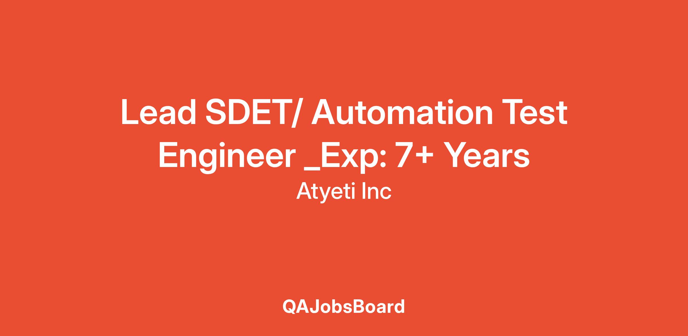 Lead SDET/ Automation Test Engineer _Exp: 7+ Years