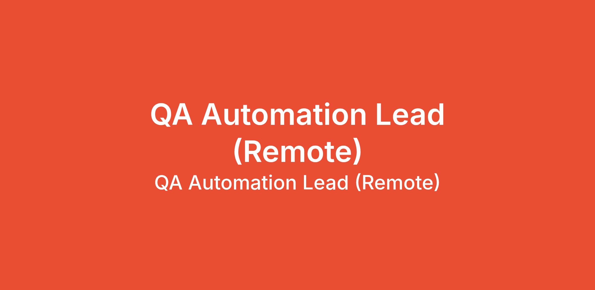 QA Automation Lead (Remote)