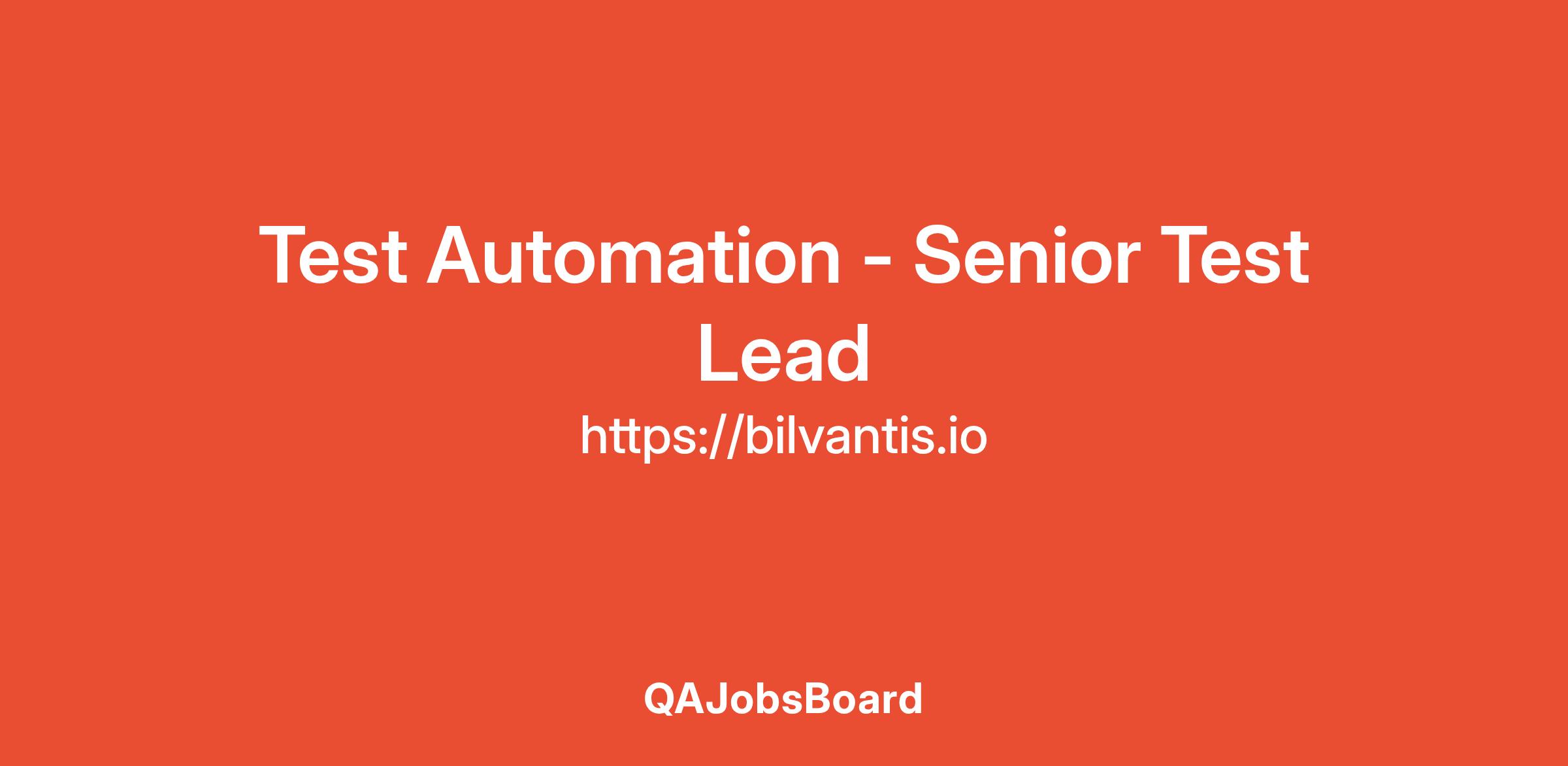 Test Automation - Senior Test LeadOpen Position: Test Automation - Senior Test Lead